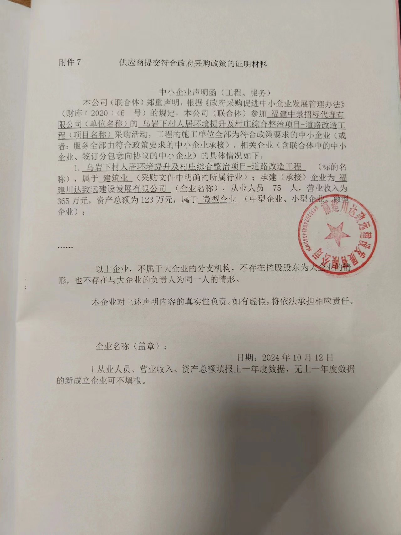 供應(yīng)商名稱:福建川達(dá)致遠(yuǎn)建設(shè)發(fā)展有限公司